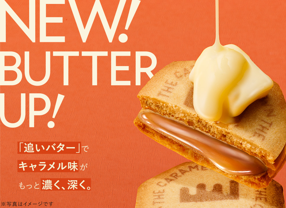 「THE CARAMEL CROWN」の代表作『THE バターキャラメルサンド』が、「NEW!BUTTER!UP!」をテーマにさらに美味しくなりました。